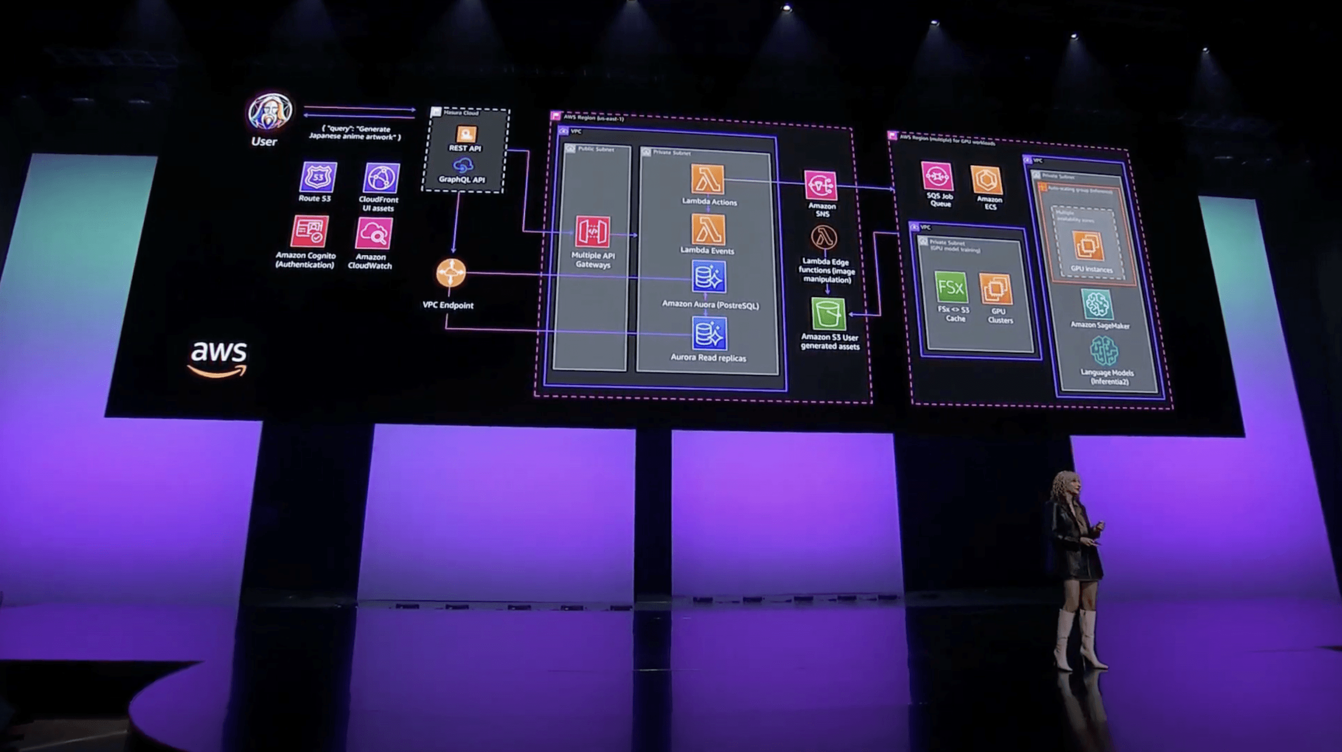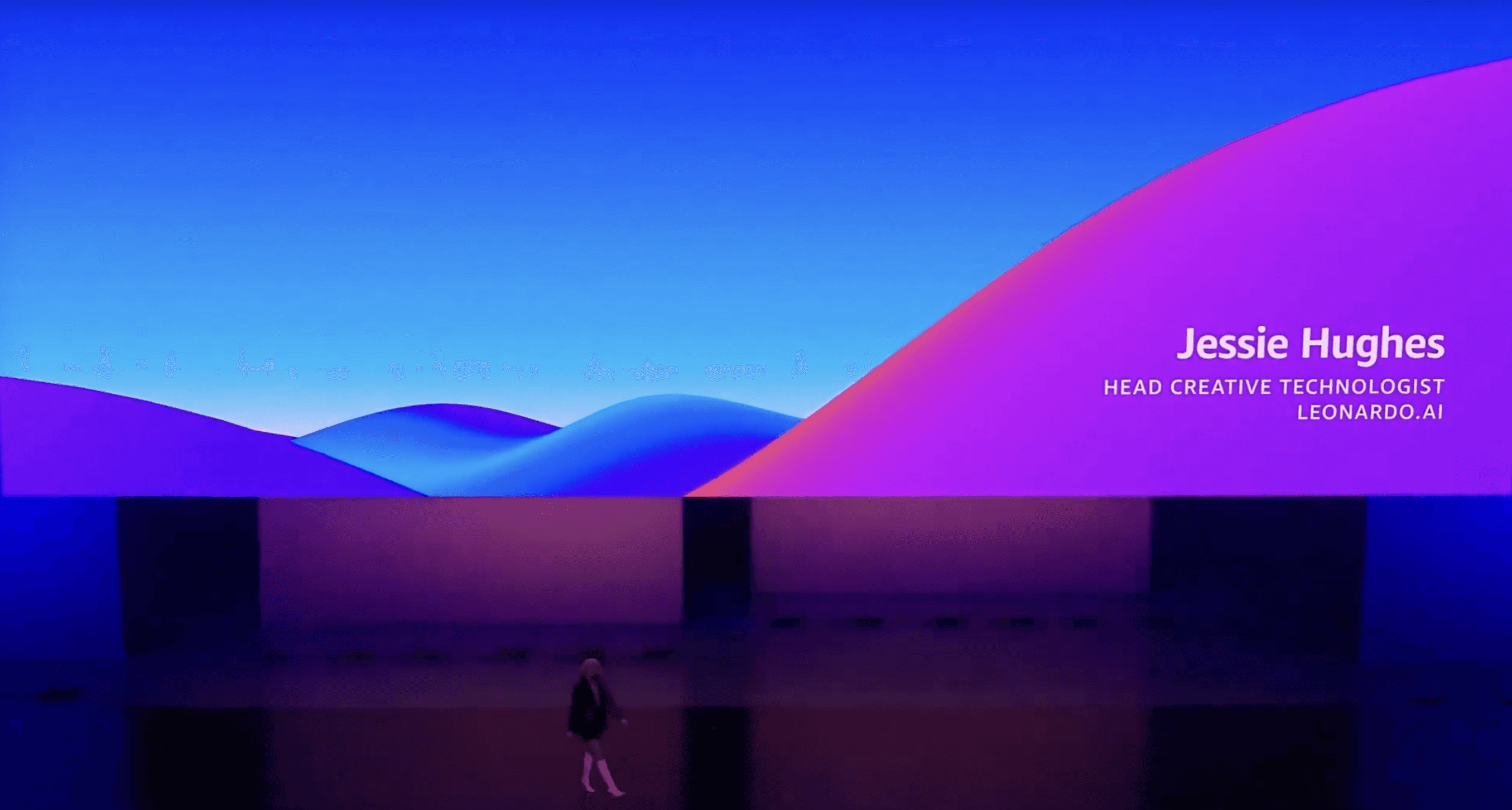 In 2024, Jessie Hughes became the public-facing evangelist for Leonardo.AI for the first time, taking the main stage at AWS Summit Sydney with a live keynote delivered to more than 8,000 attendees at the Sydney International Convention Centre. The moment marked Leonardo’s public arrival on the global stage, introducing the platform to a broad audience of creatives, technologists, and business leaders.